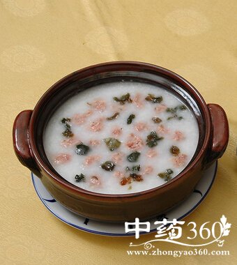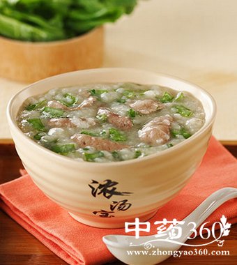 取猪肝150克,洗净切成小块,放入100克洗净的粳米中,加适量清水,并放入葱、姜、盐等调味品,共煮成粥。