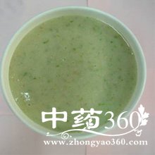 3熬煮片刻后放入乌塌菜及梨,待粥熬煮成后用筛子过滤后即可食用。