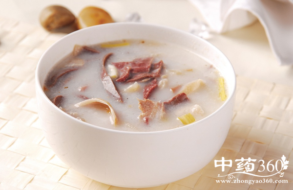 羊肉(瘦):羊肉肉质细嫩,容易消化,高蛋白、低脂肪、含磷脂多,较猪肉和牛肉的脂肪含量都要少,胆固醇含量少,是冬季防寒温补的美味之一;羊肉性温味甘,既可食补,又可食疗,为优良的强壮祛疾食品,有益气补虚,温中暖下,补肾壮阳,生肌健力,抵御风寒之功效。粳米:粳米能提高人体免疫功能,促进血液循环,从而减少高血压的机会;粳米能预防糖尿病、脚气病、老年斑和便秘等疾病;粳米米糠层的粗纤维分子,有助胃肠蠕动,对胃病、便秘、痔疮等疗效很好。