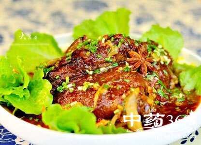 后肘, 也称后蹄髈,因结缔组织较前肘含量多,皮老韧,质量较前肘差。其烹制方法,和用途基本同前肘。