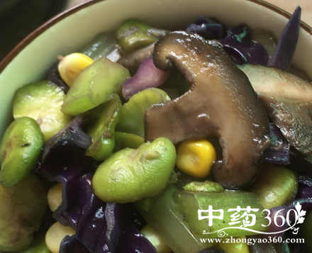 导读:热锅冷油下蚕豆和香菇,下紫甘蓝和玉米。...