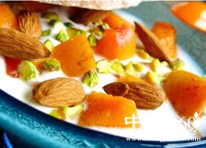 材料准备:·大杏仁100克·开心果100克·桃子100克·酸牛奶600克·淡奶油50克·冰牛奶200克·柠檬半个·