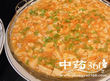 豆腐(南):豆腐的蛋白质含量丰富,而且豆腐蛋白属完全蛋白,不仅含有人体必需的八种氨基酸,而且比例也接近人体需要,营养价值较高;有降低血脂,保护血管细胞,预防心血管疾病的作用。此外,豆腐对病后调养、减肥、细腻肌肤亦很有好处。螃蟹:螃蟹含有丰富的蛋白质及微量元素,对身体有很好的滋补作用。螃蟹有清热解毒、补骨添髓、养筋活血,利肢节,滋肝阴,充胃液之功效,对于淤血、黄疸、腰腿酸痛和风湿性关节炎等有一定的食疗效果。螃蟹具有抗结核作用,对结核病的康复大有补益。鸡蛋:鸡蛋含有丰富的蛋白质、脂肪、维生素和铁、钙、钾等人体所需要的矿物质,其蛋白质是自然界最优良的蛋白质,对肝脏组织损伤有修复作用;同时富含DHA和卵磷脂、卵黄素,对神经系统和身体发育有利,能健脑益智,改善记忆力,并促进肝细胞再生;鸡蛋中含有较多的维生素B和其他微量元素,可以分解和氧化人体内的致癌物质,具有防癌作用;鸡蛋味甘,性平;具有养心安神,补血,滋阴润燥之功效。虾仁:虾仁营养丰富,肉质松软,易消化,对身体虚弱以及病后需要调养的人是极好的食物;虾肉中含有丰富的镁,能很好的保护心血管系统,它可减少血液中胆固醇含量,防止动脉硬化,同时还能扩张冠状动脉,有利于预防高血压及心肌梗死;虾肉还有补肾壮阳,通乳抗毒、养血固精、化瘀解毒、益气滋阳、通络止痛、开胃化痰等功效。