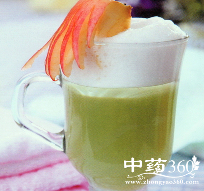 原料:苹果1个,青苹汁60毫升,奶精3平匙,冷开水250毫升,果糖30毫升,冰块适量