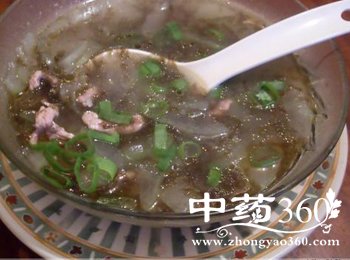 紫菜(干):紫菜营养丰富,含碘量很高,可用于治疗因缺碘引起的“甲状腺肿大”紫菜有软坚散结功能,对其他郁结积块也有用途;富含胆碱和钙、铁、能增强记忆,治疗妇幼贫血,促进骨骼,牙齿的生长和保健;含有一定量的甘露醇,可作为治疗水肿的辅助食品;紫菜所含的多糖具有明显增强细胞免疫和体液免疫功能,可促进淋巴细胞转化,提高机体的免疫力;可显著降低进血清胆固醇的总含量;紫菜的有效成分对艾氏癌的抑制率53.2%,有助于脑肿瘤、乳腺癌、甲状腺癌、恶性淋巴瘤等肿瘤的防治。冬瓜:冬瓜含有多种维生素和人体必需的微量元素,可调节人体的代谢平衡。冬瓜性寒,能养胃生津、清降胃火,使人食量减少,促使体内淀汾、糖转化为热能,而不变成脂肪。因此,冬瓜是肥胖者的理想蔬菜。同时冬瓜有抗衰老的作用,久食可保持皮肤洁白如玉,润泽光滑,并可保持形体健美。此外冬瓜还有良好的清热解暑功效。夏季多吃些冬瓜,不但解渴消暑、利尿、还可使人免生疔疮。因其利尿,且含钠极少,所以是慢性肾盐水肿、营养不良性水肿、孕妇水肿的消肿佳品。猪肉(瘦):猪肉含有丰富的优质蛋白质和必需的脂肪酸,并提供血红素(有机铁)和促进铁吸收的半胱氨酸,能改善缺铁性贫血;具有补肾养血,滋阴润燥的功效;猪精肉相对其它部位的猪肉,其含有丰富优质蛋白,脂肪、胆固醇较少,一般人群均可适量食用。鸡蛋:鸡蛋含有丰富的蛋白质、脂肪、维生素和铁、钙、钾等人体所需要的矿物质,其蛋白质是自然界最优良的蛋白质,对肝脏组织损伤有修复作用;同时富含DHA和卵磷脂、卵黄素,对神经系统和身体发育有利,能健脑益智,改善记忆力,并促进肝细胞再生;鸡蛋中含有较多的维生素B和其他微量元素,可以分解和氧化人体内的致癌物质,具有防癌作用;鸡蛋味甘,性平;具有养心安神,补血,滋阴润燥之功效。