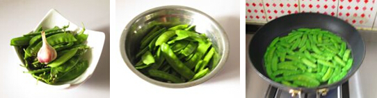 3.锅中注入水加入几滴油和一点盐,大火烧开,下入荷兰豆焯水。
