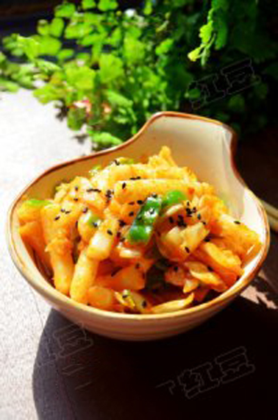 辅料:油适量;盐适量;韩式辣酱15g;白糖2g;香油适量;熟芝麻适量。