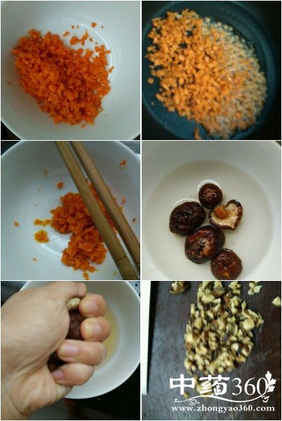 11.把切好的胡萝卜和香菇丁一起加入,拌匀。