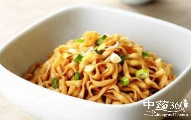 1.鲜面条放进开水中,中火煮至面条8成熟,面条捞出后过凉水降温,然后沥干水分。