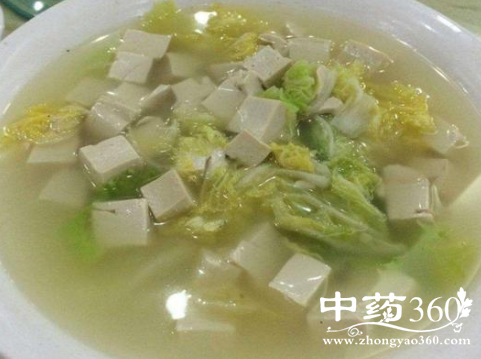应用鸡汤烹制,吃火时间不要过长,汤与豆腐、白菜入锅烧沸后,移小火略烩一下即成。