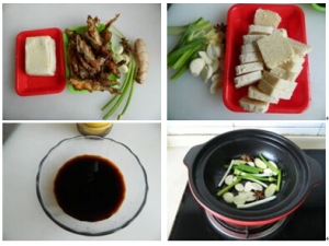 主料:鱼骨 150克 鸡肉 50克 火腿 15克 青豆 15克