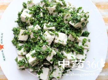 香椿:香椿是时令名品,可健脾开胃,增加食欲。抗衰老和补阳滋阴的美食。另外香椿还具有清热利湿、利尿解毒之功效,是辅助治疗肠炎、痢疾、泌尿系统感染的良药。香椿的挥发气味能透过蛔虫的表皮,使蛔虫不能附着在肠壁上而被排出体外,可用治蛔虫病。香椿含有丰富的维C、维E、胡萝卜素等,有助于增强机体免疫功能,并有润滑肌肤的作用,是保健美容的良好食品。其次香椿具有抗菌消炎、杀虫的作用,可用治疮癣、疥癞等病。豆腐:豆腐的蛋白质含量丰富,而且豆腐蛋白属完全蛋白,不仅含有人体必需的八种氨基酸,而且比例也接近人体需要,营养价值较高;有降低血脂,保护血管细胞,预防心血管疾病的作用。此外,豆腐对病后调养、减肥、细腻肌肤亦很有好处。