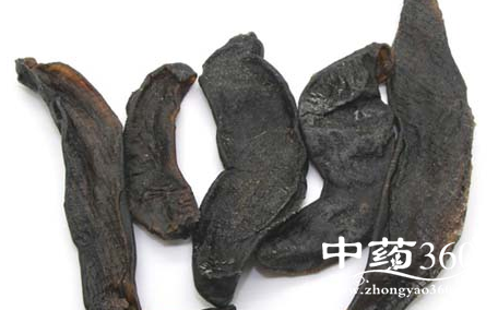 宽水蛭:呈扁平纺锤形,全体由许多环节组成,长5~9厘米,宽0.8~2厘米,常腹背相贴而呈拘挛状。体前端稍尖,后端钝圆,前吸盘不显著,后吸盘较大。背面黑棕色。体两侧及腹面为棕黄色。质脆,易折断,断面角质样。有腥气。