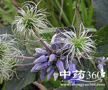 【原形态】大叶铁线莲,基部木质。高0.3-1m。主根粗大,表面棕黄色。茎粗壮,纵条纹明显,密生白色糙绒毛。叶对生,三出复叶,长达30cm;叶柄长4.5-15cm,被毛;小叶片亚革质或厚纸质,宽卵形、卵圆形或近圆形,长6-13cm,宽4-10cm,先端短尖头,上面暗绿色,近无毛,下面有曲柔毛,脉上尤多;顶生小叶柄长,侧生小叶柄短。聚伞花序顶生或腋生,花梗粗壮,有白色糙绒毛,每花下有一个线状披针形苞片;花杂性,两性花与雄花异株;花直径2-3cm;萼片4,蓝紫色,窄长圆形或宽线形,长1.5-2cm,宽约5mm,先端常反卷,下半部靠合管状,外面有白色厚绢状短柔毛,内面无毛,边缘密生白色绒毛;花瓣无;春蕊多长柔毛;心皮多数,有的白色绢毛。瘦果卵形,长约4mm,红棕色,有短柔毛,宿存花柱羽毛状,长达3cm。花期8-9月,果期9-10月。