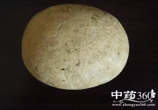 【药材】呈球形、卵圆形或扁圆形,大小不等,一般直径约6~20厘米,重250~2500公分,但也有小如豆粒者,表面蛋青色、灰白色至油褐色,光滑有光泽,或附有杂乱的细草纹,亦有凹凸不平者。质坚体重,剖面灰白色而有同心层纹,俗称“涡纹”,且微具玻璃样光泽。其粉末在显微镜下可看到碎草的纤维。气无味淡,嚼之可成细末。以个大、质重、坚实、灰白色、光滑、剖之有层次者为佳。