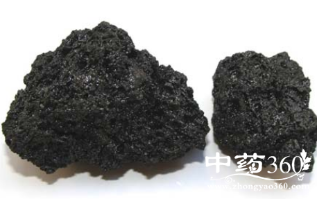 性状鉴别:本品呈不规则块状,大小不等,色乌黑而光亮。表面稍平坦并有多数小孔,状似海绵。折断面呈蜂窝状。体质轻松,易碎。用火烧之有焦发气,味苦。
