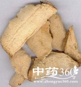【性状】本品为不规则的斜切片,边缘不整齐,大小不一,厚2~5mm。外皮黄棕色至黄褐色,有稀疏的须根残基,呈圆锥状突起。质疏松,略呈海绵状,切面灰白色至浅灰棕色,黄棕色点状维管束散在。气微,味微苦。