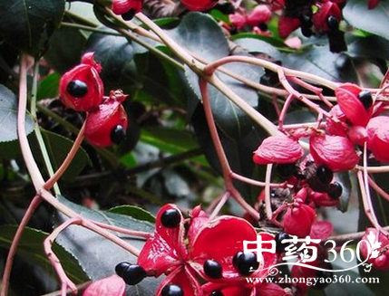【原形态】野鸦椿 落叶小乔木或灌木,高2-8m。茎皮灰褐色,具纵纹。小枝及芽红紫色,枝叶揉破后发出恶臭气味。叶对生;小叶柄长1-2mm;小托叶线形,基部较宽,先端尖,有微柔毛;奇数羽状复叶,长(8-)12-32cm,叶轴淡绿色,小叶5-9,稀3-11,长卵形或椭圆形,稀为圆形,长4-9cm,宽2-4cm,先端渐尖,基部钝圆,边缘具疏短锯齿,齿尖有腺体,下面沿脉有白色小柔毛,主脉在上面明显,在背面突出;侧脉8-11,有微柔毛。花两性,圆锥花序顶生,花梗长达21cm,花多,较密集,黄白色,径4-5mm;萼片与花瓣均5,椭圆形,萼片宿成;花盘盘状,心皮3,分离;雄蕊5,花丝扁平;雌蕊3;子房卵形。蓇葖果,长1-2cm,每一花发育为1-3个,果皮软革质,紫红色,有纵脉纹。种子近圆形,假种皮肉质,黑色,有光泽。花期5-6月,果期8-9月。