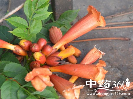 为紫葳科植物美凌霄Campsis radicans (L.)Seem.的花。夏、秋季花盛开进采摘,晒干或低温干燥。