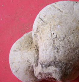 【原形态】苦白蹄,又名:药用层孔。菌盖马蹄形,通常拳头大或更大,白色至淡黄色,初期表面具光滑的薄皮,后渐开裂变粗糙,有时有同心环带,边缘钝;菌肉软,粉白色,疏松质轻,老时易碎;菌管白色,多层。孢子无色,光滑,卵形。