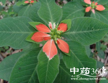 叶象花,为大戟科植物猩猩草的全草。我国各地及各大植物园都有栽培,在贵州兼有逸为野生者。含Ⅳ-乙酰氨基半乳糖,其种子含蛋白质、脂肪油,油中含亚油酸和亚麻酸等。具有凉血调经、散瘀消肿之功效。用于月经过多、外伤肿痛、出血、骨折。