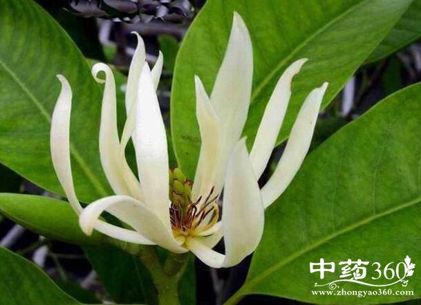 常绿乔木,高达10~20米(江,浙等地天气较寒,常呈灌木状,高仅1~2米);树皮灰色,幼枝和芽被白色柔毛。叶薄革质。互生,卵状椭圆形或长圆形,长10~25厘米,宽4~9厘米,两端均渐狭,两面无毛或于下面被疏毛,小脉网状;叶柄长1.5~2厘米,上有短的托叶痕迹,约为柄全长的1/3或1/4。花白色,单花腋生,极香,长3~4厘米;萼片长圆形;花瓣线状,长3.2厘米;雄蕊多数,多列,花丝扁平;心皮多数,胚珠在每心皮内多于2,螺旋状排列于延长有柄的花托上,子房被毛,柱头头状。果近球形,由多数开裂的心皮组成,多不结实。花期7月。