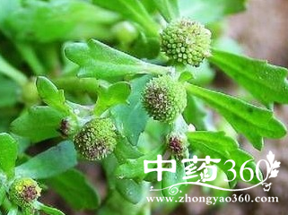【原形态】石胡荽 一年生小草本,高5-20cm。茎纤细,多分枝,基部匍匐,着地后易生根,无毛或略具细绵毛。叶互生;无柄;叶片楔状倒披针形,长7-20mm,宽3-5mm,先端钝,边缘不规则的疏齿,无毛,或下面稍有细毛。头状花序细小,扁球形,直径约3mm,单生于叶腋,无总花梗或近于无总花梗;总苞半球形;总苞片2层,椭圆状披针形,绿色,边缘膜质,外层较内层大;花托平坦,无托片;花杂性,淡黄色或黄绿色,全为筒状;外围雌花多层,花冠细,有不明显的裂片;中央的两性花,花冠明显4裂。瘦果椭圆形,长约1mm,具4棱,边缘有长毛;无冠毛。花期9-11月。