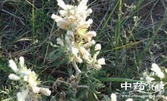 【原形态】脓疮草,多年生草本,高30-35cm。且粗大的木质的主根。茎直立,四棱形,基部近木质化,密被白色短绒毛。叶对生;叶柄与叶片近等长,被绒毛;叶片轮廓为宽卵圆形,宽3-5cm,茎生叶掌状5裂,裂片常达基部,宽2-4mm,常有2-3对大齿或浅裂片,小裂片条状披针形,上面密被短毛,下面被紧密的绒毛。轮伞花序多花,多数密集排列成顶生假穗状花序;小苞片钻形,先端刺尖,被绒毛;花萼筒状钟形,长1.4-1.8cm,外面密被绒毛。轮伞花序多花,多数密集排列成顶生假穗状花序;小苞片钻形,先端刺尖,被绒毛;花萼筒状钟形,长1.4-1.8cm,外面密被绒毛,萼齿5,稍不等大,前2齿略长,先端短刺尖;花冠淡黄或白色,长3-4cm,外面被丝状长柔毛,上唇盔状,下唇浅3裂,有红条纹,中裂片较大,心形,侧裂片卵圆形;雄蕊4,前对稍长,略被微毛柔毛,花药2室;子房4裂,花柱略短于雄蕊,柱头2浅裂;花备用平顶。小坚果卵状三棱形。花期7-9月,果期8-10月。