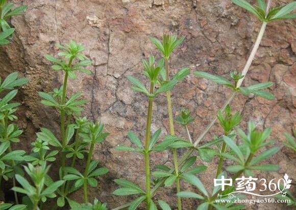 性状鉴别 全草纤细,昀破碎,表面灰绿或绿褐色。茎具四棱,直径1-1.5mm,棱上有多数倒生剌;质脆,易折断,断面中空。叶6-8片轮生,无柄;叶片多卷缩破碎,完工整者展平后呈披针形或条状披针形,长约2cm,宽2-4mm,边缘及下表面化中脉有倒生小剌。聚伞花序腋生或顶生,花小,易脱落。果小,常呈二半球形,密生白色钩毛。气微淡。以色绿、有花果者为佳。