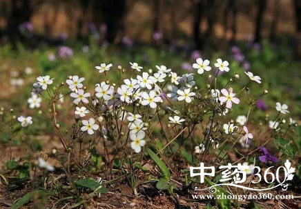 【原形态】多年生矮小草本,全株被白色细柔毛。根细长,具少数分枝。叶簇生于基部;叶片椭圆形或倒披针形,先端钝尖或钝圆,基部渐狭,全缘,上面绿色,下面粉绿。伞形花序生于花茎顶端;花茎自基部抽出,细长,长10~15厘米,绿色或带紫红色;花小,粉红色。