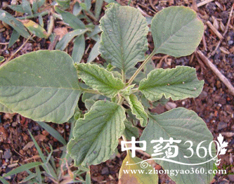 (方歌)下痢疴血小便痛,湿热扭肚痔疮红,簕苋菜头煲瘦肉,诸症均疗治有功。