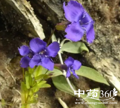 【原形态】一年生草本,高3.5-40cm。茎单生,基部分枝或不分枝。基生叶3-5对,叶柄扁平,长达6mm;叶片匙形,长0.4-3cm,宽2-9mm,先端圆形,边缘具乳突,基部狭缩成柄;茎生叶1-4对,无柄;叶片长圆形或椭圆状披针形,长0.5-5.5cm,宽2-14mm,先端钝,边缘具乳突,基部钝,离生。花单生茎及分枝顶端;花梗长1.5-20cm,果期略伸长;花萼筒形,长为花冠之半,裂片近等长,外对狭三角形,内对卵形;花冠蓝色或下部黄白色,上部蓝色,裂片宽长圆形,先端圆形,有微齿;腺体近球形,下垂;花丝线形,花药黄色,长圆形;子房具柄,长2-3.5cm,花柱长3-4mm。蒴果具长柄,椭圆形。种子黑褐色。花、果期7-10月。
