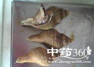药材基源:为盔螺科动物管角螺和天狗角螺等的厣。