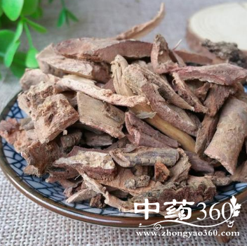 【药材】①根皮呈不规则的长条块片状,长短大小不一,扭曲而稍卷,厚约3~6毫米。外表面粗糙有皱纹及横向灰白色皮孔。木栓灰黄色,常呈鳞片状剥落,显出红棕色皮部。内表面红棕色或黄白色,较平坦,有纵向纹理。质脆,易断,断面红褐色,外皮颗粒性,内皮纤维性。气微弱,味苦而涩。