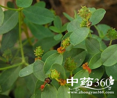 【原形态】高山大戟 多年生草本,高5-10cm。上部被白色卷曲微柔毛;茎基部被膜质鳞片;自基部分枝,分枝铺散或上升。叶互生;柄极短;叶片椭圆形或倒卵形,绿色带紫,长0.5-1.2cm,宽0.3-0.7cm,先端钝圆或急尖,基部楔形;花序基部的叶3-4枚轮生,菱状圆形或倒卵形,长0.5-0.8cm,宽0.3-0.8cm。总苞半球状;腺体5枚,横长圆形,花柱基部连合,先端多少头状而全缘。蒴果球形,直径约3mm,具细颗粒;种子光滑,种阜凸起。花果期5-9月。