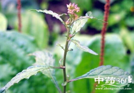 【原形态】一年生草本,高20~80厘米。茎直立,柔弱,少分枝,稍被毛。叶互生;具柄;披针形至卵形或倒卵形,长2~6厘米,宽1~3厘米,先端钝或短尖,边缘有浅齿,基部狭楔尖,下延至叶柄,两面疏被毛;近枝端的叶较狭而小。头状花序长约7毫米,宽约2.5毫米,排列成疏散的伞房花序;总苞片数列,锐尖,最外列较短;全部管状花,两性,约20朵,淡紫红色,花冠长于苞片2倍,先端5裂。瘦果圆柱形,长约2毫米,有线条,被毛,冠毛白色,多数。花期全年。