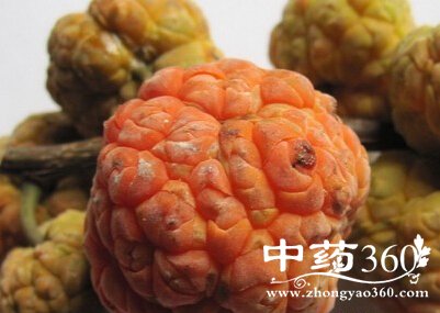 【性状】性状鉴别 果实球形,直径3-5cm。鲜品橙红色,具毛茸,有乳黄色浆汁,干品棕红色,皱缩。剖开后,果皮内层着生有多数瘦果,每一瘦果包裹在肉质的花被和苞片中。基部有极短的果柄。气微,味微甜。