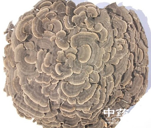 药材基源:为多孔菌科真菌彩绒革盖菌的子实体。