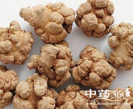 【性状】:性状鉴别呈球形或长圆形,有时略带连珠状,长2-4cm,直径1.5cm。先端下陷,叶着生处常倒曲,有残存的膜质叶基,表面浅灰棕色,有粗皱纹,须根痕多数。质稍硬,折断面较平,颗粒性,横切面暗褐黄色,微有虹样光泽,散布有点状纤维管束,内皮层环明显。