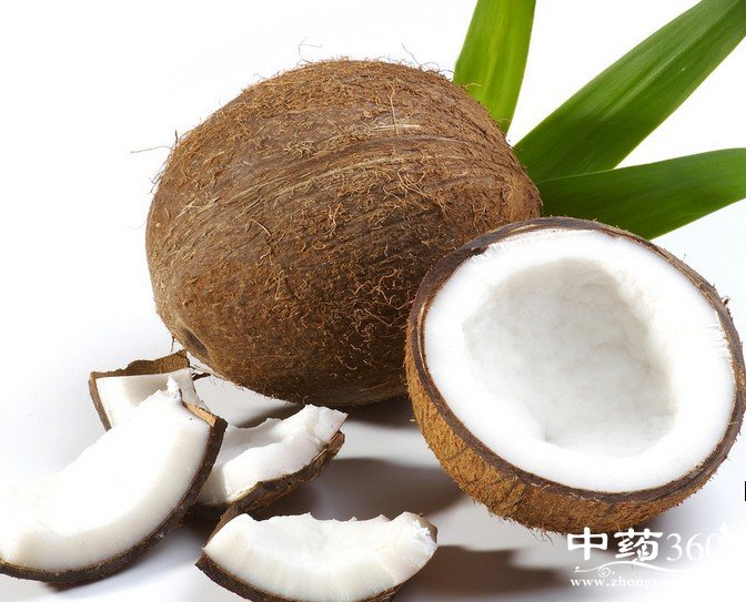 椰子性味甘、平,入胃、脾、大肠经;果肉具有补虚强壮,益气祛风,消疳杀虫的功效,久食能令人面部润泽,益人气力及耐受饥饿,治小儿涤虫、姜片虫病;椰水具有滋补、清暑解渴的功效,主治暑热类渴,津液不足之口渴;椰子壳油治癣,疗杨梅疮。