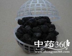 药材基源:为火山喷出的岩浆凝固形成的多孔状石块—浮石。