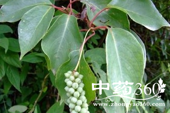 【原形态】落叶木质藤本。枝细长,红褐色,有皮孔。叶椭圆形、倒卵形或卵状披针形,长5~11cm,宽3~7cm,先端短尖,基部楔形或近圆形,边缘有疏锯齿。花单性,异株,单生或1~2朵生于叶腋,橙黄色;花梗纤细,长2~4cm;花被片5~9;雄蕊10~15,雄蕊柱倒卵形;紫蕊群近球形,心皮30~50。聚合果长6~9cm;浆果近球形,长6~9mm,红色,肉质。花期5~7月,果期8~10月。