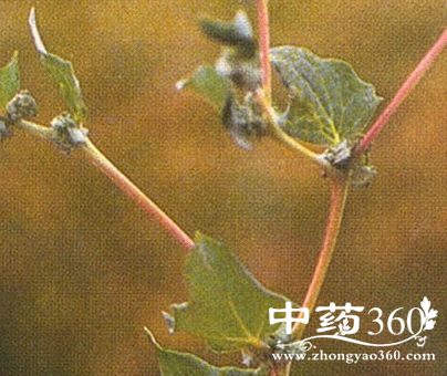 资源分布:1.一年生草本,高20~50cm。茎直立,钝四棱形,通常自基部分枝,有白粉粒;枝斜升,有条纹。叶互生;叶柄长3~6mm;叶片卵状三角形至菱状卵形,长3~5cm,宽1.5~3cm,先端微钝基部宽楔形,边缘有疏锯齿,近基部的1对齿较大,成裂片状,下面灰白色,密生粉粒。团伞花序,几遍布叶腋;花单性;雄花花被片5,雄蕊5,花丝基部连合;雌花无花被,为2个合生苞片包围;果期苞片膨大,木质,表面具多数不规则的刺状突起,顶缘牙齿状,基部楔形。胞果卵形或近圆形,果皮膜质,白色,与种子贴伏。种子直立,红褐色或