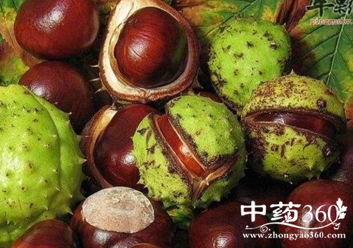 【来源】为七叶树科植物七叶树或天师栗的果实或种子。霜降后采摘,晒7~10天后堆焖回潮,再用文火烘干,烘前用针在果皮上刺孔,以防爆破,且易干燥。亦有直接晒干或剥除果皮晒干者。