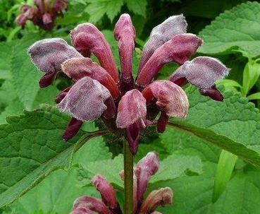 【植物形态】糙苏 多年生草本,高80~100厘米。根长,红褐色,圆锥形或纺锤形。茎直立,四棱形。单叶对生,阔卵圆形,长5~10厘米,宽4~8厘米,先端短尖,基部心形,边缘有粗锯齿,两面有粗毛或星状毛;叶柄长2~6厘米。轮伞花序;苞片披针形咸狭披针形;萼筒长约1厘米,先端有5个刺状齿;花冠白色或粉红色,2唇形,长于萼筒,喉部之上密布多数白色茸毛或星状毛,上唇2裂,拱曲,下唇3裂,外面密生茸毛;雄蕊4;花柱单一,柱头2裂。小坚果卵圆形。花期7月。果期8~9月。 生于山地林中、林边灌丛中、河岸、山谷。分布辽宁、吉林、河北、河南,内蒙古、陕西、甘肃、宁夏、湖北、四川、云南、山东、江苏、安徽、广东等地。