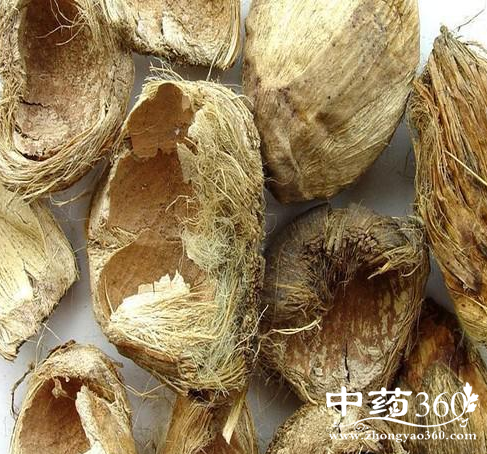大腹毛又名槟榔皮、槟榔壳、大腹皮、茯毛、槟榔衣、大腹绒。为棕榈科植物槟榔的干燥果皮。冬季至次春采收未成熟的果实,煮后干燥,纵剖两瓣,剥取果皮,习称“大腹皮”;春末至秋初采收成熟果实,煮后干燥,剥取果皮,打松,晒干,习称:大腹毛。多产于福建、台湾、广东、海南、广西、云南等地。
