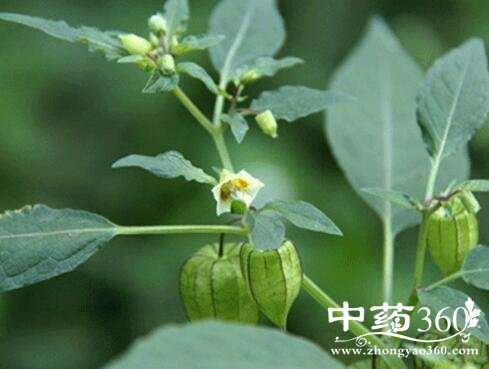 【原形态】一年生草本,高30—90厘米。茎直立或披散,上有细棱,具短毛。单叶互生,或2片聚生;卵圆形至矩圆形,长3.5—10厘米,宽2—5厘米,先端短尖,基部略呈心形或斜偏,边缘浅波状或有疏锯齿,上面绿色,下面浅绿色,两面脉上均被短茸毛,下面较密;叶柄长7—25毫米,被短茸毛。花单生于叶脓;花梗长4—5毫米,具短茸毛;花萼绿色,钟状,5浅裂,径3—4毫米,表面有5棱,具短茸毛;花冠黄色,短筒状,长约5毫米,5浅裂,裂片圆形,喉部内面带紫色;雄蕊5,花丝黄色,药蓝紫色,超出花冠外;雌蕊1,子房上位,2室,花柱浅黄色,柱头绿色,圆形。浆果圆形,直径约1厘米,黄色;宿萼在结果时膨胀成灯笼状,包围在浆果外面,但与果分离。花期6—7月。果期9—10月。