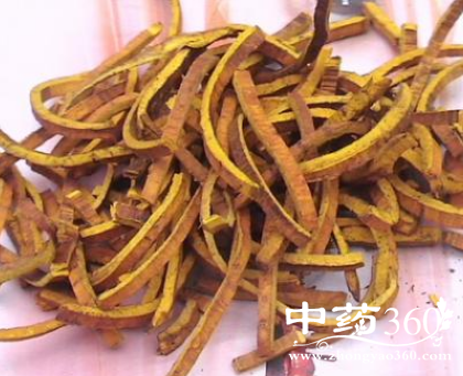 为植物黄皮树及其变型变种的干燥树皮。呈稍弯曲的板片状,边缘不整齐,长宽不一,厚约3~5毫米,栓皮多已剥离。外表面深黄色,较平坦,有纵棱线及棕色皮孔;内表面灰黄色或黄色。质坚硬而轻,易折断,折断面纤维性,呈片状分裂,鲜黄色。气微,味苦,嚼之有粘滑性,能使水染黄色。以片张厚大、鲜黄色、无栓皮者为佳。