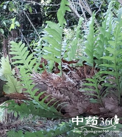 以上两种植物根或茎上的鳞片(骨碎补毛)亦供药用,另详专条。