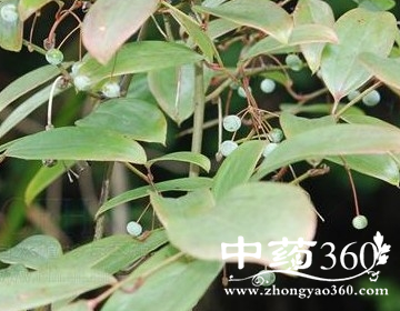 【来源】百合科粉菝葜Smilax glauco-china Warb.,以根状茎、嫩叶入药。